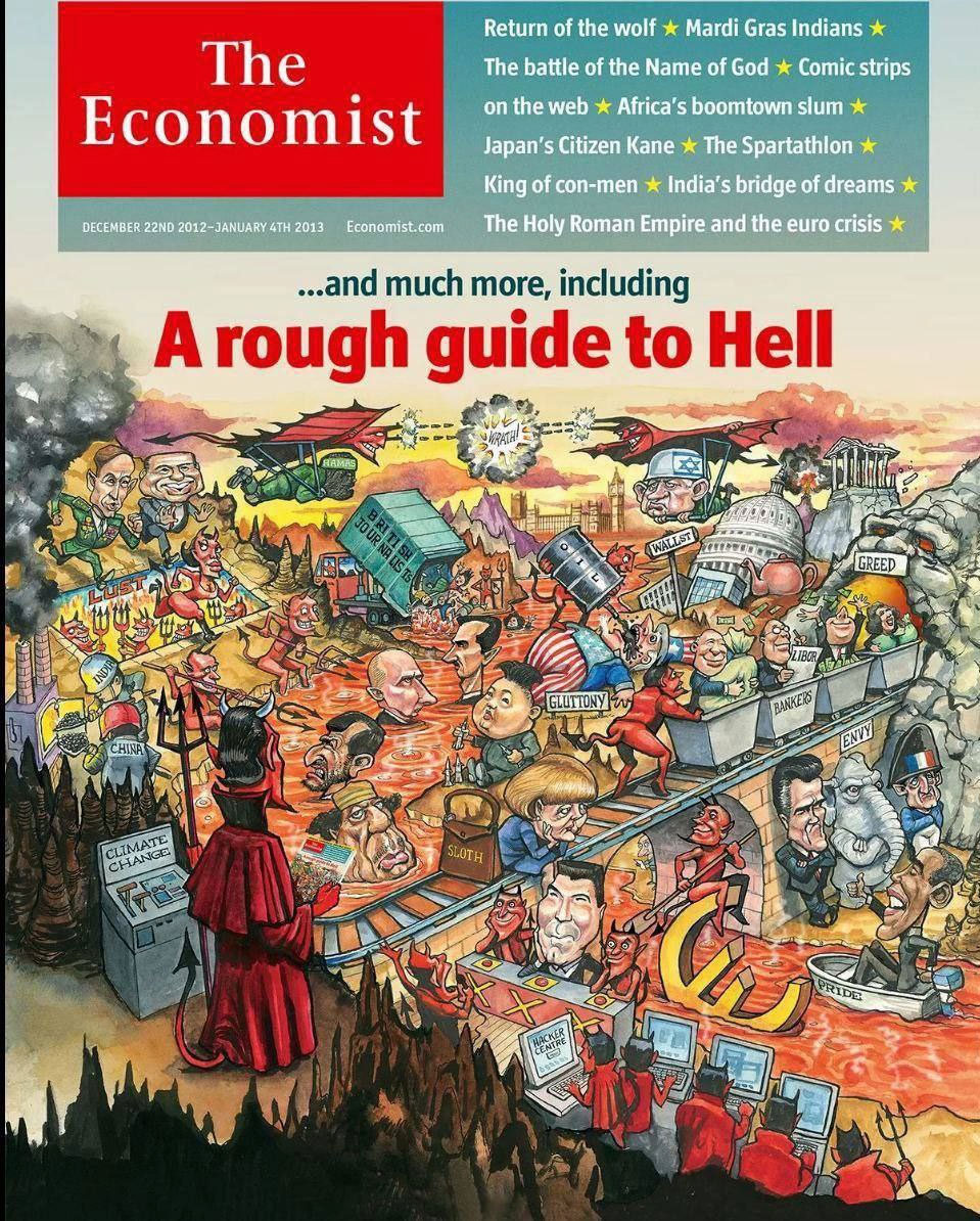 Predictive Programming: Economist Magazine 2013, the year the first Jesuit Pope took to the stage. The magazine is a Rothchild publication, the Rothchild are the banking dynasty who are believed to be the guardians of the Vatican wealth. The cover is a forecast of events to come under the new Pope Francis. Return of the wolf points to the Roman agenda (world domination), Romulus and Remus, twin brothers raised by the wolf, Romulus kills Remus and goes onto found Rome. Battle of the Name of God, Kane (Cain, the original one who slew his twin brother). The king of con-men (we pay for water that falls from the sky, if they can get you to pay for the air in the form of a carbon tax that will be the ultimate con - The Climate Con). The Holy Roman Empire and of course the title A rough guide to hell which was to be unleashed on the world. Seven deadly sins (a nod to the seven heads of the beast that rises up from the sea in Revelation 13), all the world leaders compromised, falling into apostasy but is it just a show to rob you blind? The Hamas/Israel conflict with devil shaped paragliders which would take place on 7th Oct 2023 ('Our Lady of Victory' day in Catholicism), the end of British journalism, cyber attacks, the devil in the scarlet coloured papal robes whilst holding a copy of the magazine as though checking that the events line up whilst standing next to a climate change machine with levers, a nod to the whole thing being scripted 'ordo ab chao', that is, order out of chaos, a motto of 33 degree Scottish Rite Freemasonry, and a mass psychological operation on the people of the world. Vatican means Diving Serpent.