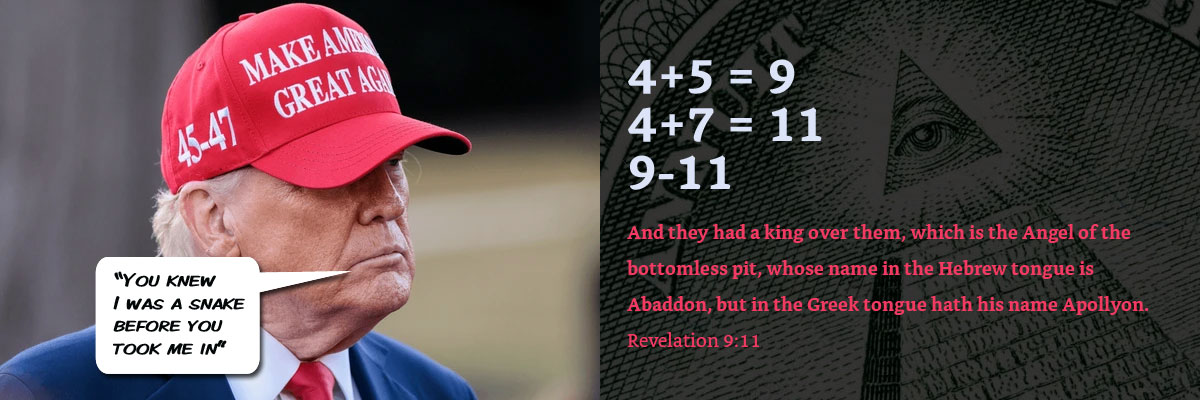 (Destruction). The numerology of 911 has been used over, and over around the nation of America. It is the Emergency call number. It was the date of the destruction of the Twin Towers which took 11 years to build and when standing projected a giant 11 over the skyline of New York and 9+1+1=11. It is also believed by some to be the birth date of Jesus Christ. Trump is the 45th and 47th President giving a coding of 9-11 in numerology which parallels Pope Pius IX (9th) and the appearance of the end of the Papal States in 1870 only for the power to be reinstated under Pope Pius XI (11th) in 1929 giving a coding of 9-11. The 911 coding pointing to the destroying angel (messenger) called Apollyon in the Greek and Abaddon in the Hebrew that comes out of the pit in Revelation 9:11. They do like their numbers, however it is something we must overcome and not allow these things to draw us in and overtake us with fear and superstition.