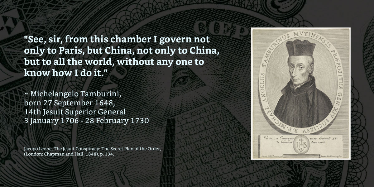 Michelangelo Tamburini: https://en.wikipedia.org/wiki/Michelangelo_Tamburini - What was the method of the Jesuits controlling all these nations? Installing religion for division, creating spy networks disguised as missionaries, intelligence gathering, influencers, men disguised as priests, astrologers, teachers, military advisors. Jesuit trained highly esteemed, and cunning men who work their way up into the highest offices of power, becoming advisors to emperors, princes and monarchies.