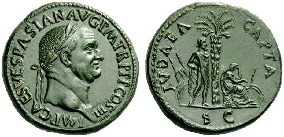 When we study Rome's strategy we learn that she capitalises on conflict between people groups to gain the upper hand. It was Rome who installed Herod the Edomite (Idumean) on the throne of Jerusalem and Judea knowing full well that there was a deep rooted contention between Edom (Esau) and Israel (Jacob) throughout the ages. This divide and conquer strategy of using Herod as the thin edge of the wedge along with economic pressure such as heavy taxing of the people, and all the political and religious dogma around the Herodians and Judaism would create a powder keg that would eventually lead to the Jewish revolts of 66-70 AD ending in the destruction of Jerusalem and the temple. All Rome had to do was light the fuse, sit back, and watch her enemies destroy themselves and then swoop in to put out the fires of sedition, acting as umpire, without the accusation of being the aggressors, yet reveling as the victors, taking the land and it's spoils in the process. It would prove to be a strategy that would give the Romans countless victories to rule over the peoples of the earth right up to modern day. Rome commemorated the occasion by minting a coin depicting the capture of Judah.
