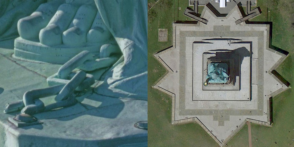 It was the very same image that was used in the design of the Statue of Liberty given to the USA by French Freemasonry and points to the French Revolution out of which "democracy" was birthed. A passing of the torch from France to America, pointing to the next new world order being birthed out of an apostasy created on America soil. The statue depicts a manfaced (androgyne) being holding up a torch (a light bearer, light bringer, son of the morning, venus [Lucifer]), with a crown of seven rays. The statue also has chains on the feet, possibly pointing to the angel in the pit [Apollyon/Abaddon]). The whole image is mounted on a starfort, that is, a fortress for a star (angel, messenger) again pointing to the angel in the pit (prison).