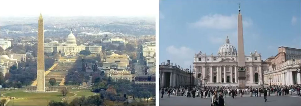 The image of the beast: Washington DC on the border of Virginia and Maryland alongside the Vatican, Rome.