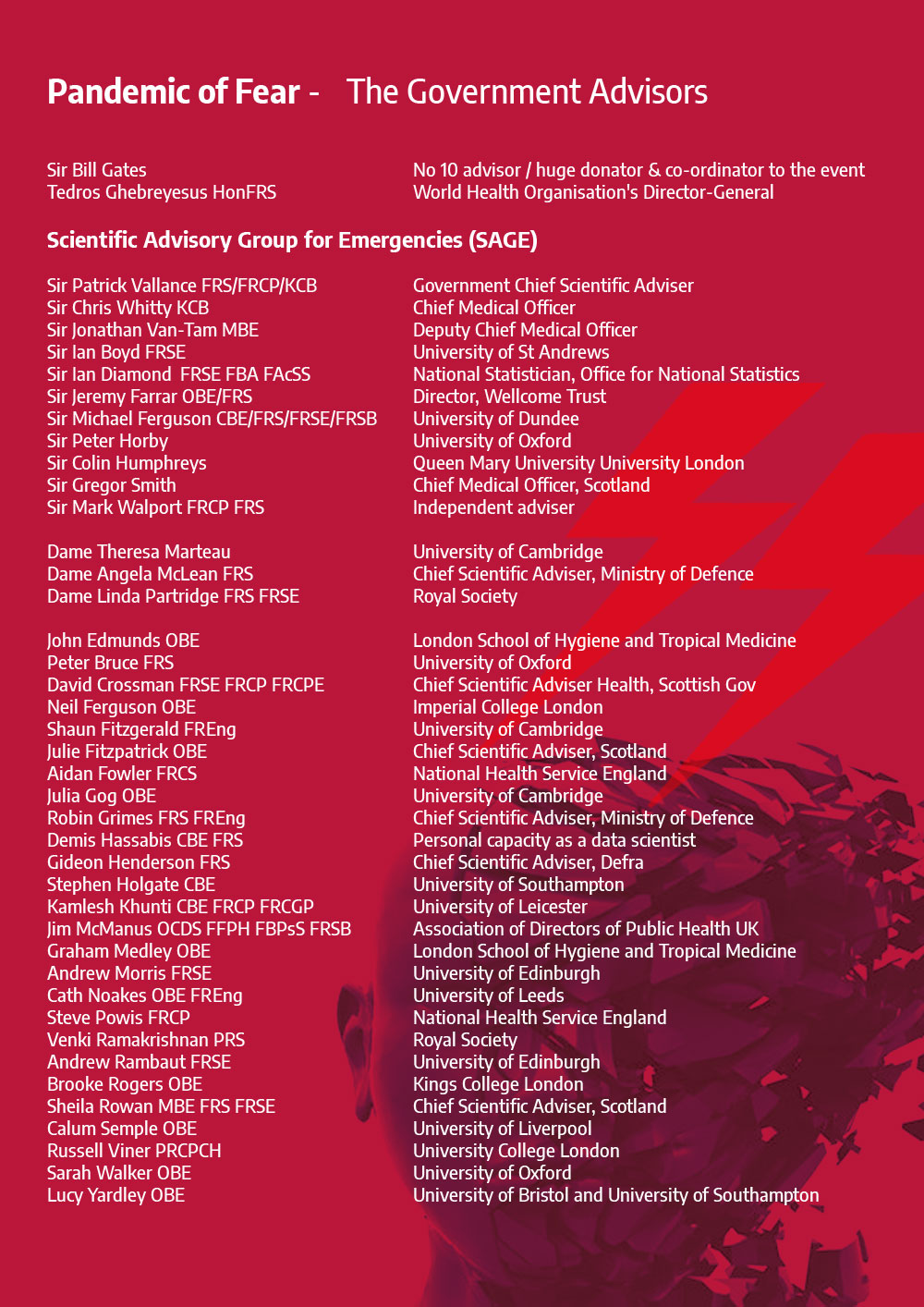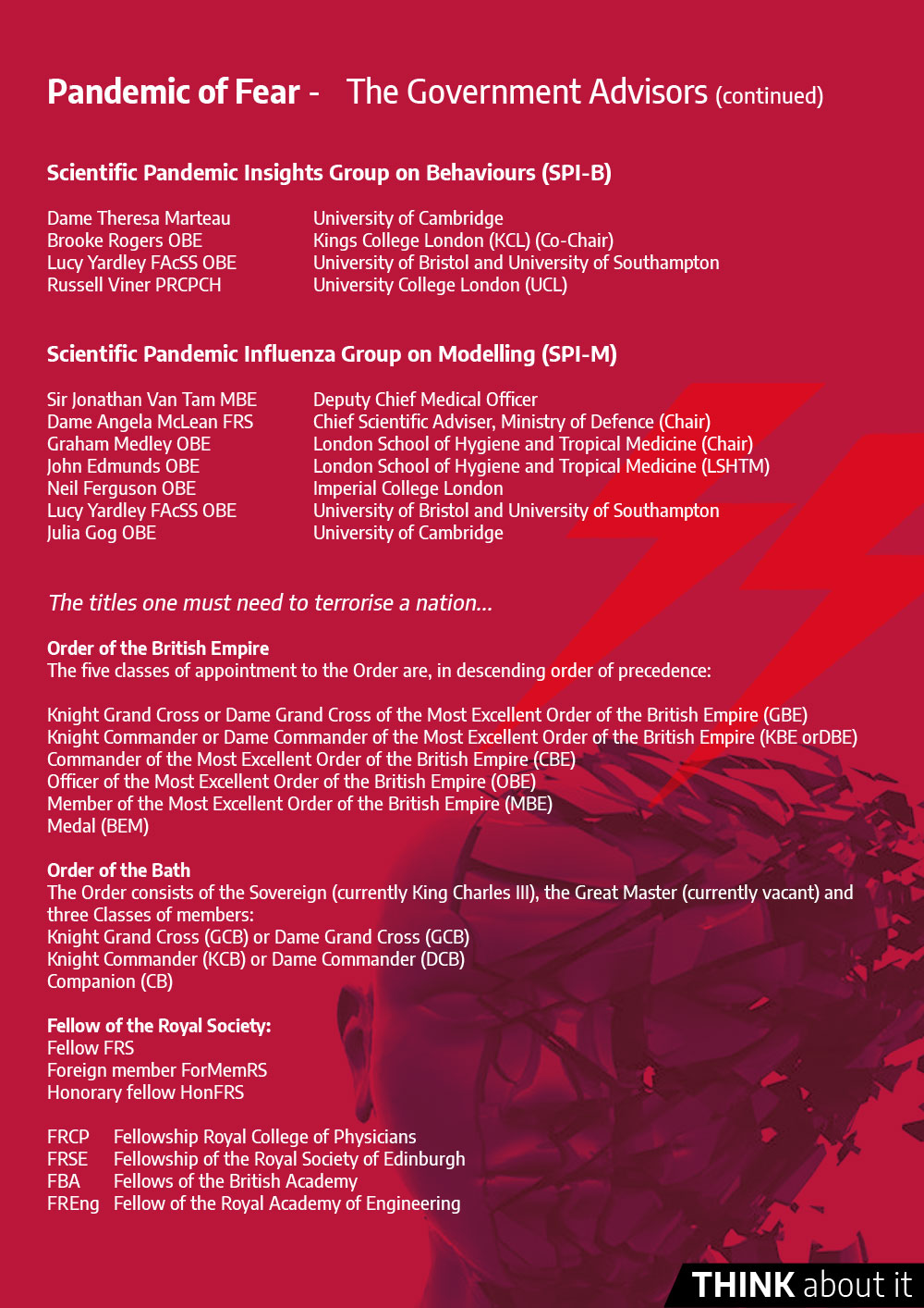 Here is a list of some of the names behind the 2020 Covid campaign of fear and terror, note the common theme being Freemasonic Royal Society, Knights, Dames and/or part of the British establishment. The information was sourced from the government's website. I'm not saying they are all wicked or complicit, many are simply blind empty suits who follow orders and aspire to medals and titles. It is also worth remembering that these institutions are not the tip of the spear. The UK monarchy submitted to Papal power in 1213 AD under king John Lackland, becoming a vassal to the Roman Catholic Church.